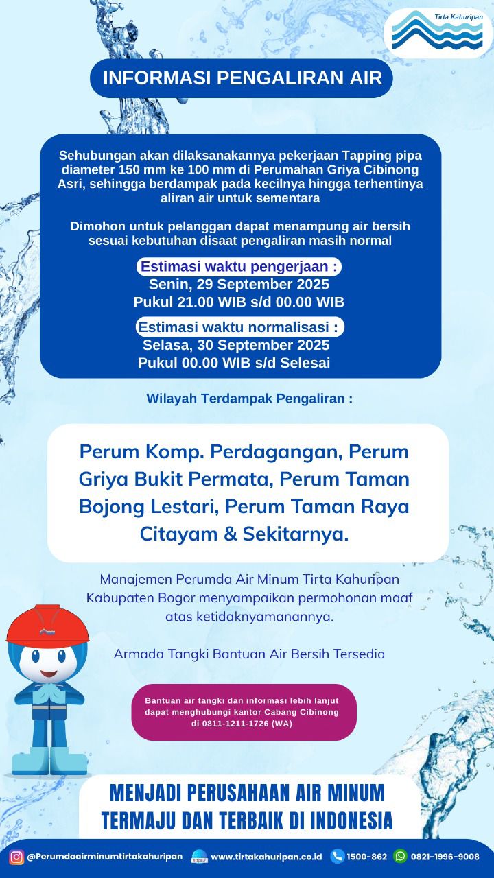 [CAB. CIBINONG] INFO PENGALIRAN AIR 29 SEPTEMBER 2025