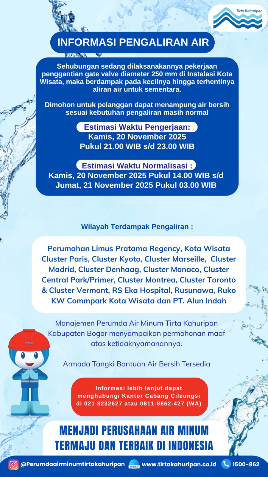 [CAB. CILEUNGSI] INFO PENGALIRAN AIR 20 NOVEMBER 2025