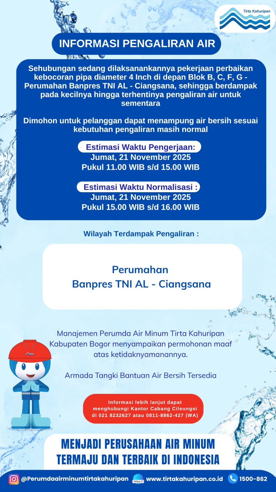 [CAB. CILEUNGSI] INFO PENGALIRAN AIR 21 NOVEMBER 2025