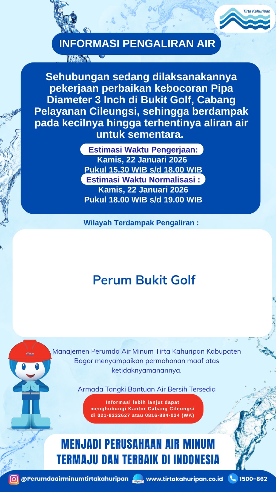 [CAB. CILEUNGSI] INFO PENGALIRAN AIR 22 JANUARI 2026