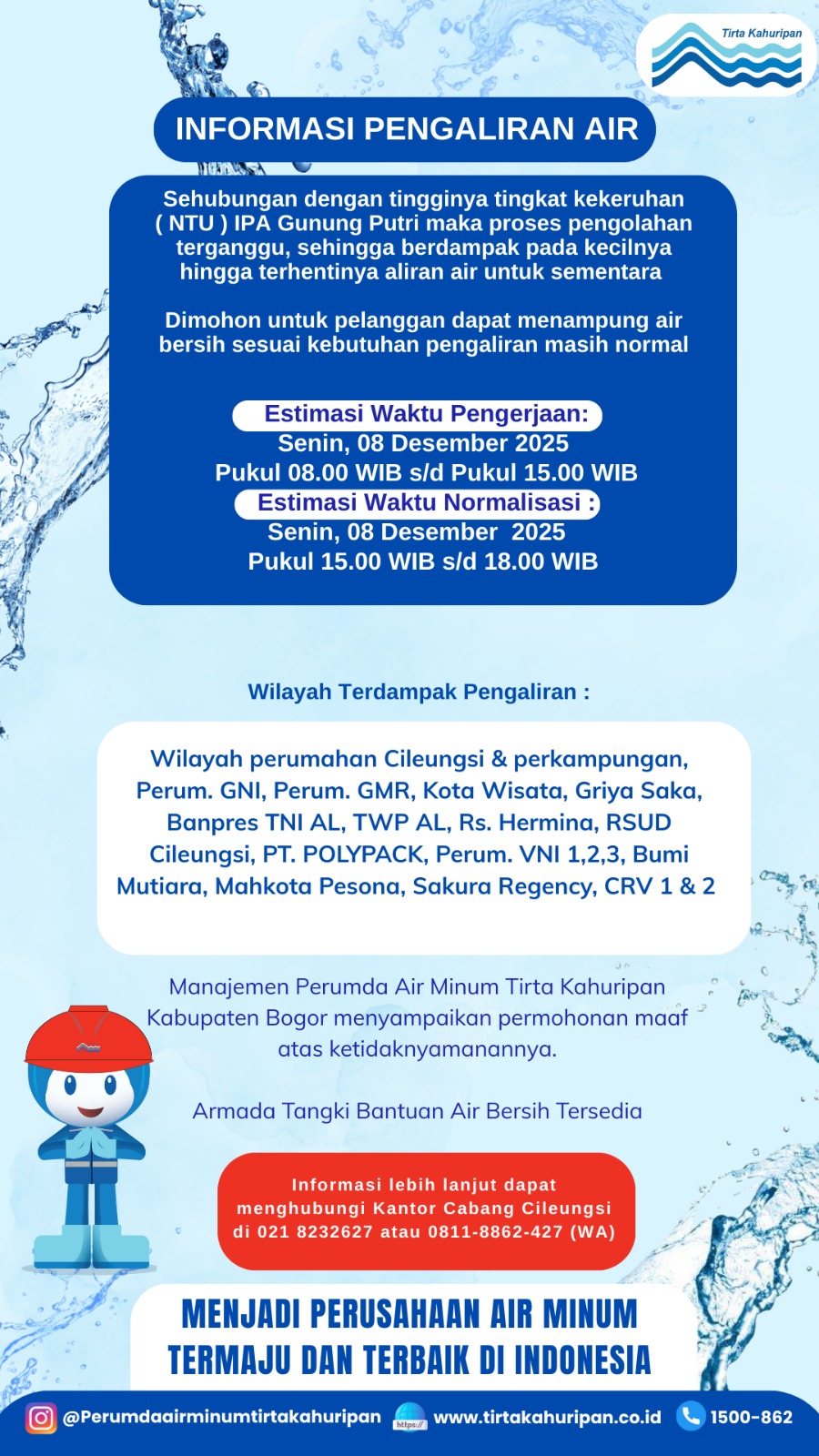 [CAB. CILEUNGSI] INFO PENGALIRAN AIR 8 DESEMBER 2025