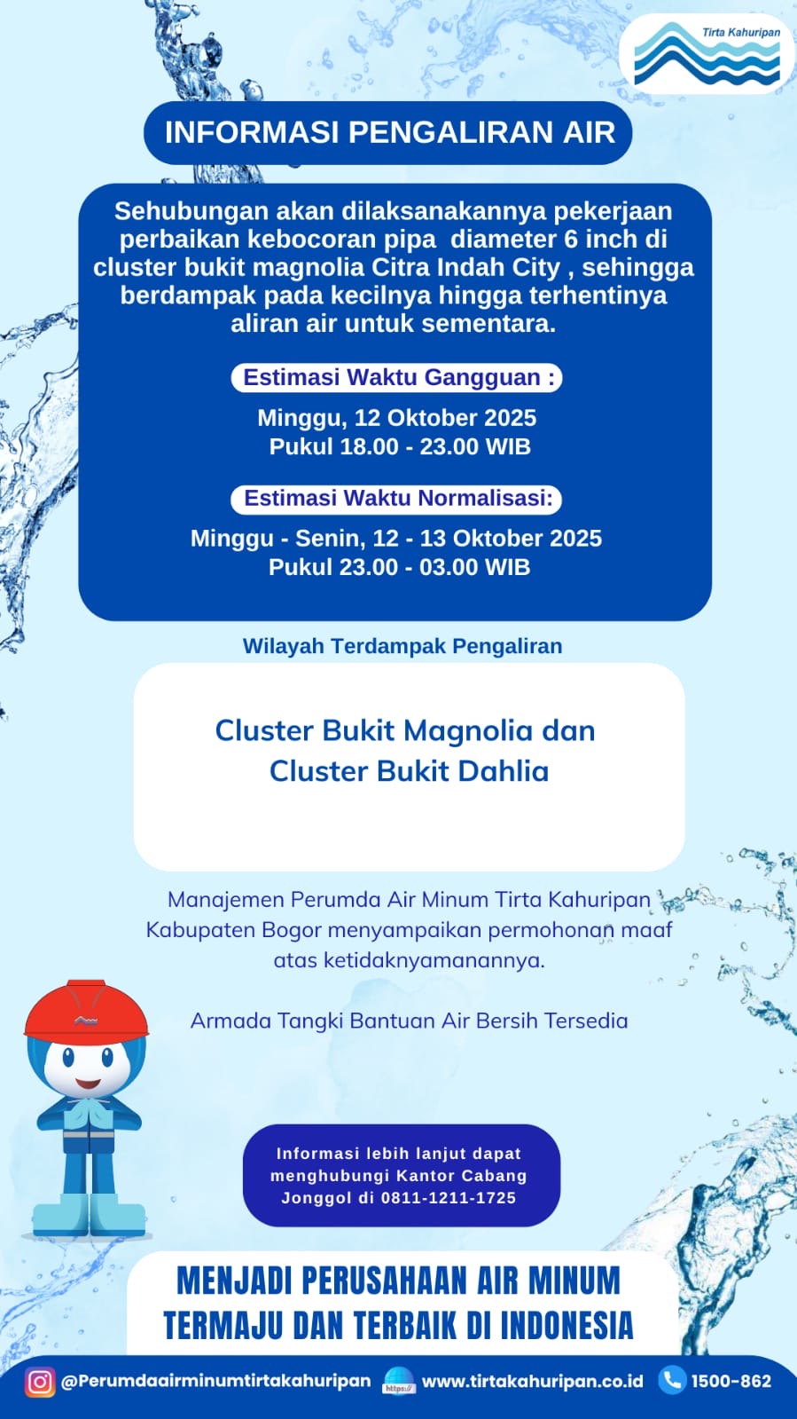[CAB. KEMANG] INFO PENGALIRAN AIR 13 OKTOBER 2025