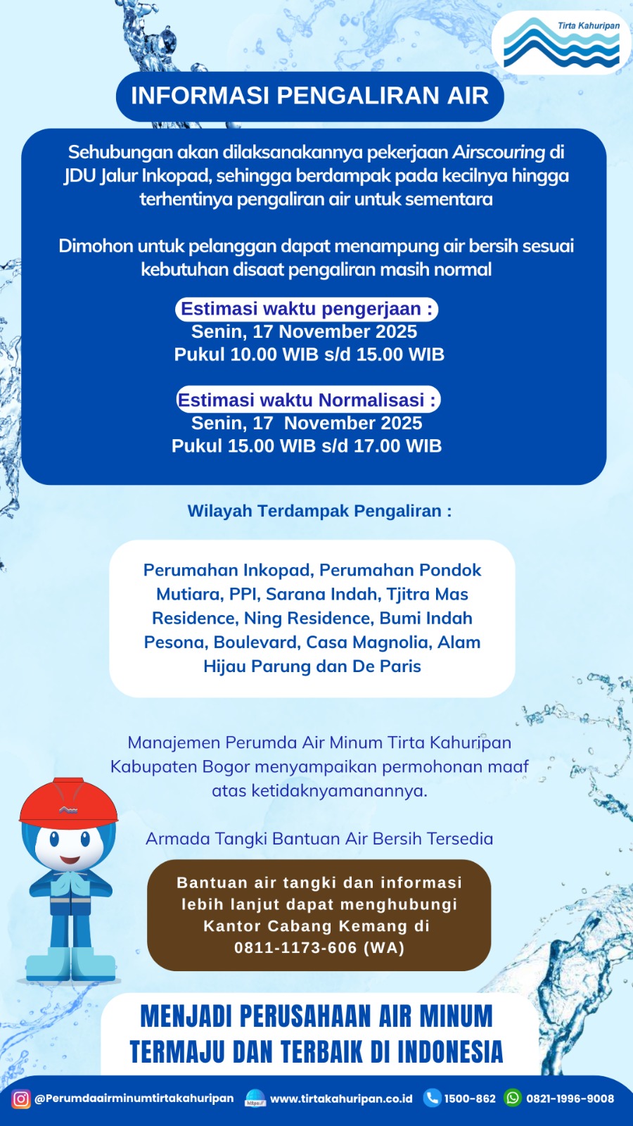 [CAB. KEMANG] INFO PENGALIRAN AIR 17 NOVEMBER 2025