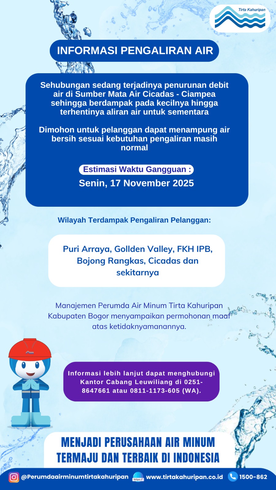 [CAB. LEUWILIANG] INFO PENGALIRAN AIR 17 NOVEMBER 2025