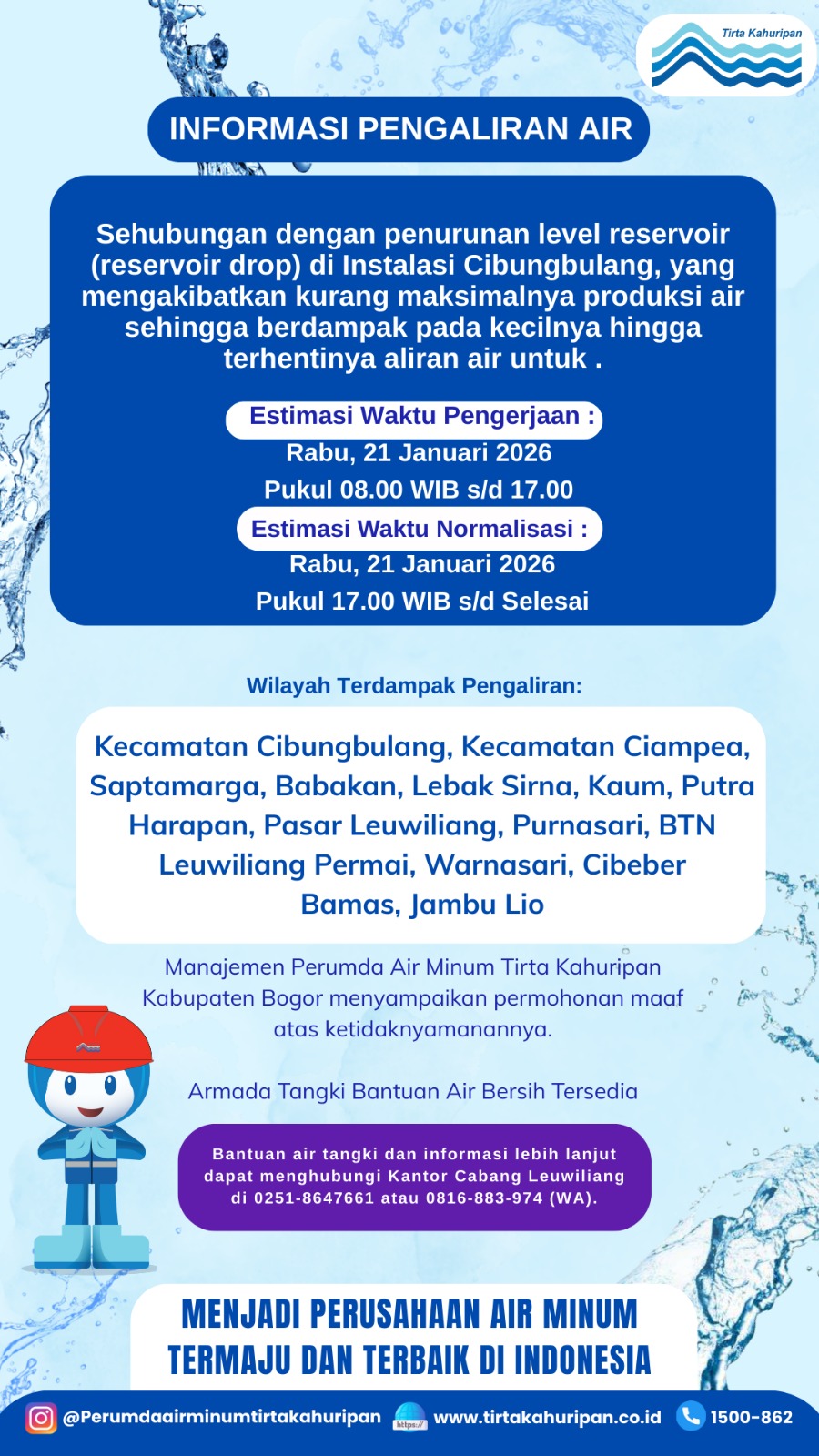 [CAB. LEUWILIANG] INFO PENGALIRAN AIR 21 JANUARI 2026