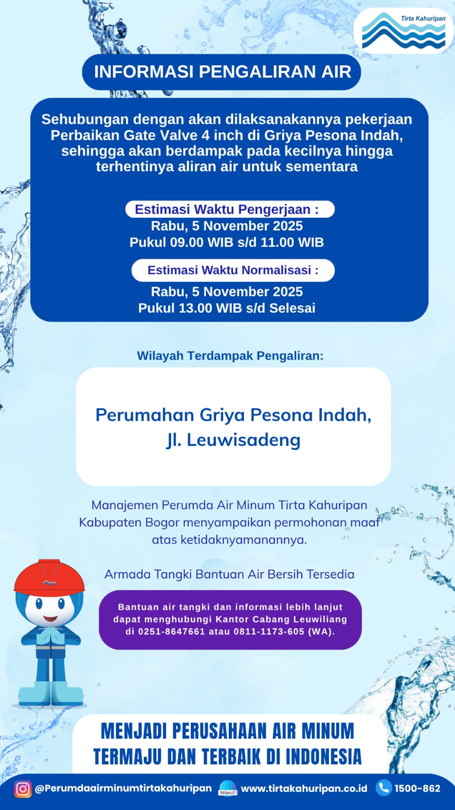 [CAB. LEUWILIANG] INFO PENGALIRAN AIR 5 NOVEMBER 2025