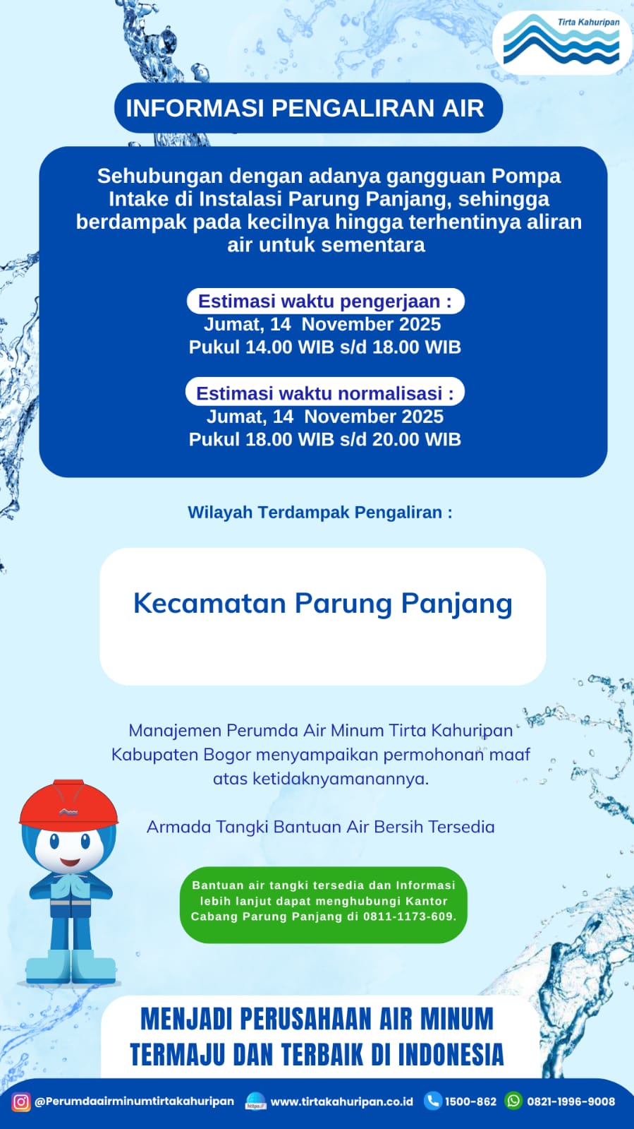 [CAB. PARUNG PANJANG] INFO PENGALIRAN AIR 1 NOVEMB...