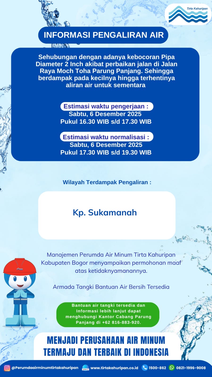 [CAB. PARUNG PANJANG] INFO PENGALIRAN AIR 6 DESEMB...