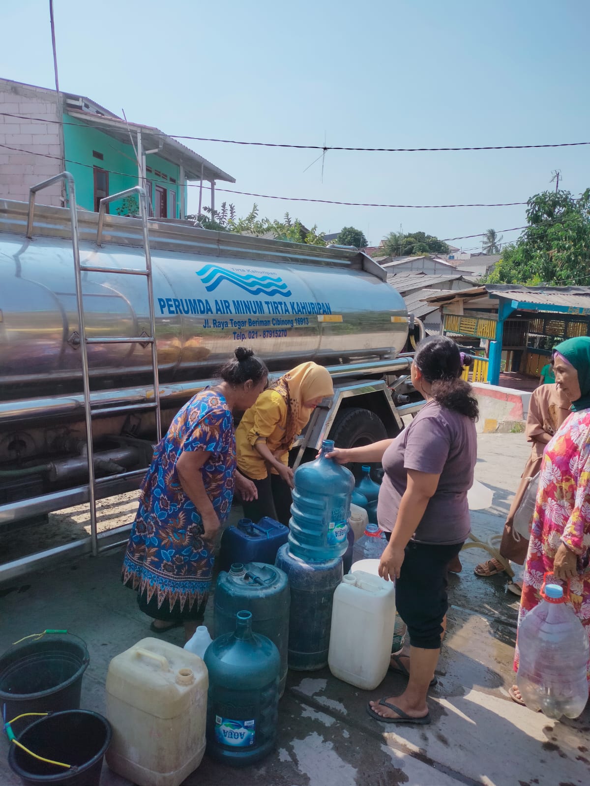 Armada tangki air bersih kami selalu siap siaga mendistribusikan air bersih bagi masyarakat Kabupaten Bogor yang terdampak kekeringan. Kami juga mengimbau kepada masyarakat, khususnya pelanggan Perumda Air Minum Tirta Kahuripan agar bijak menggunakan air bersih.